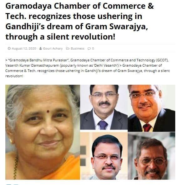 GCOT has instituted the “Gramodaya Bandhu Mitra Puraskar” to commemorate the 150th Birth Anniversary of the Father of the Nation, Mahatma Gandhi, and is recognizing 150 Individuals / Institutions globally, working on Gandhian perspective of Agriculture, Rural Development, and self-contained villages.