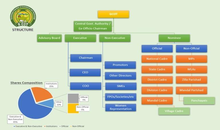 The Authorised Share Capital of the GCOT is Rs. 10.00 Lakhs with 1.00 Lakh Shares having Rs. 10.00 as share Value. Out of 100% of shareholding, 65% of shares are earmarked for the Individuals and or Institutions, who are actively participant in the GCOT Activities. The remaining 35% shares are earmarked for the individuals and or institutions which don’t take part in activities directly but they shall either provide services to the GCOT or they shall avail the services of the GCOT.